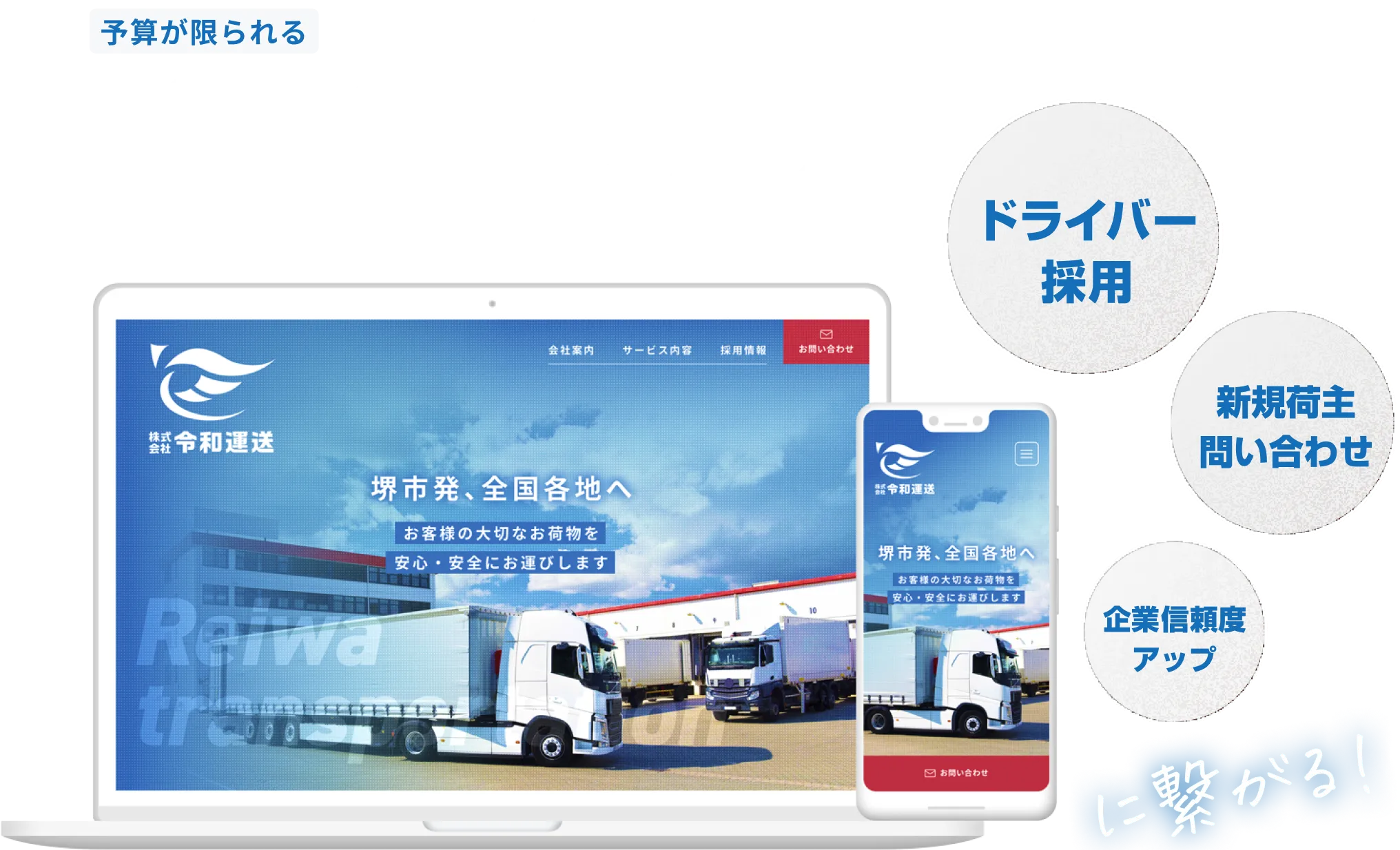 応募者を引きつけるドライバー採用の第一歩は、魅力的なホームページから。 運送業界に特化したデザインとコンテンツで、 求職者に貴社の魅力を最大限にアピールします。