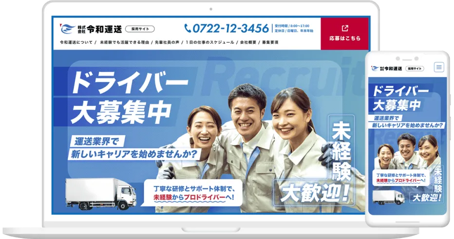 貴社の魅力を最大限に反映させたデザインで、荷主や求職者からの信頼感もアップ。採用や集客に役立ちます。 -